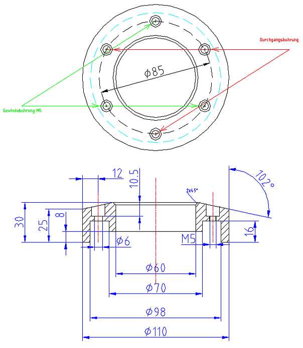 Ich habe mich für Nietmuttern der Größe M5 entschieden. Die Originalbohrung der Nieten wurde auf 7,1 mm aufgebohrt und die Nietmuttern gesetz. Dadurch braucht man keine zusätzlichen Bohrungen einzubringen. Die verbliebenen offenen Bohrungen der Zierblende auf 12 ; 4 und 8 Uhr nehmen nun die Verbindungsschrauben zur Befestigung auf. Die Co-Einstellung sollte kontrolliert werden um einen zu mager laufenden Motor aus zu schließen.